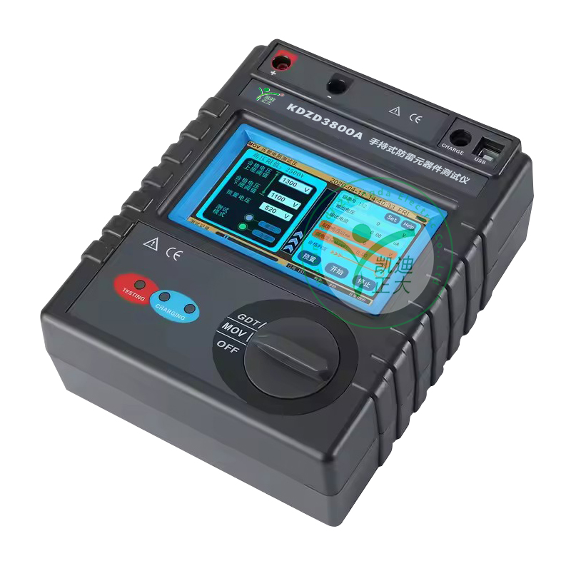 KDZD3800A 手持式防雷元器件測(cè)試儀用于測(cè)量各種壓敏電阻(MOV)和氣體放電管(GDT) 性能參數(shù)測(cè)試,儀表具有高壓短路保護(hù)、過(guò)流保護(hù)功能,具有參數(shù)設(shè)置功能、高壓 限值設(shè)定、升壓速度設(shè)定、合格范圍設(shè)定、合格判斷篩選、自動(dòng)量程調(diào)節(jié)等功能。還具有單件測(cè)試模式、連續(xù)測(cè)試模式功能,適合批量元件測(cè)試。其中KDZD3800A還具有絕緣電阻、吸收比、極化指數(shù)測(cè)試功能。