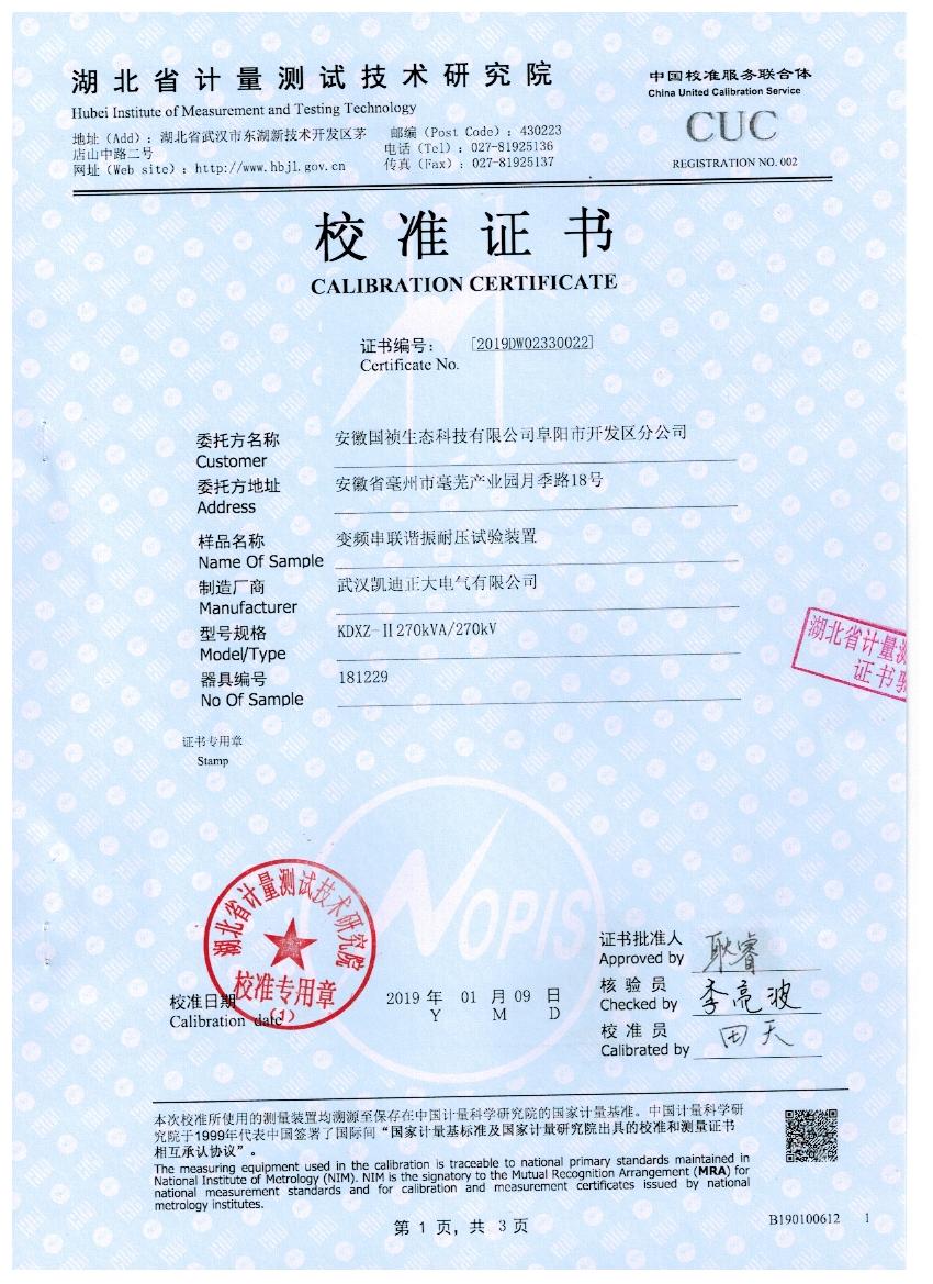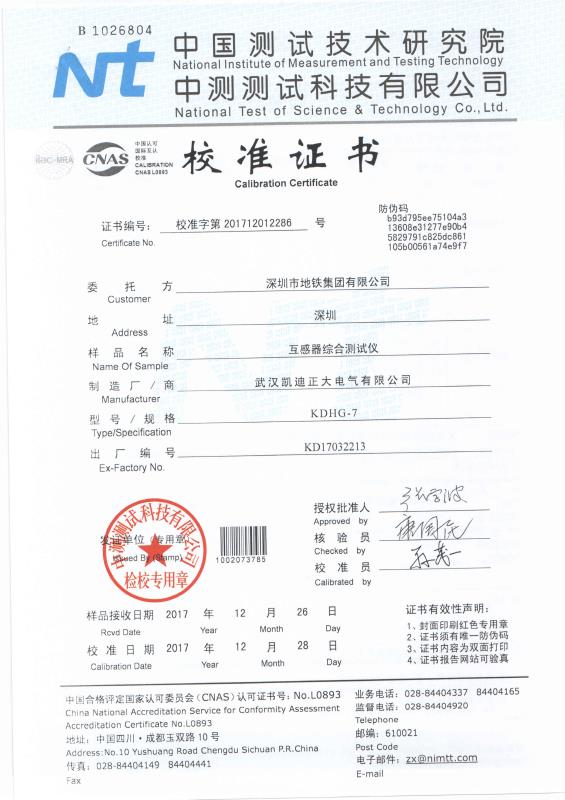 中國測試技術(shù)研究院-KDHG互感器儀校準證書
