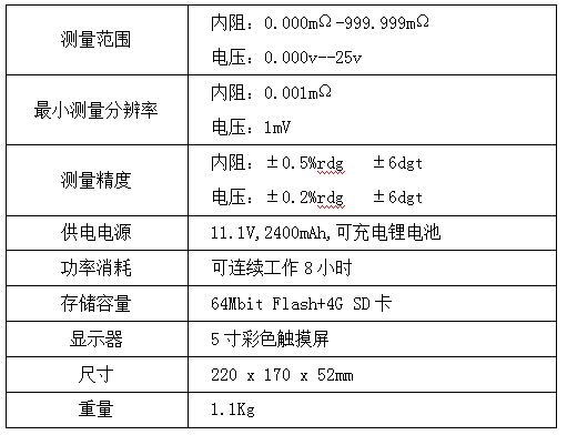 凱迪正大KDZD818蓄電池內(nèi)阻測(cè)試儀技術(shù)參數(shù):