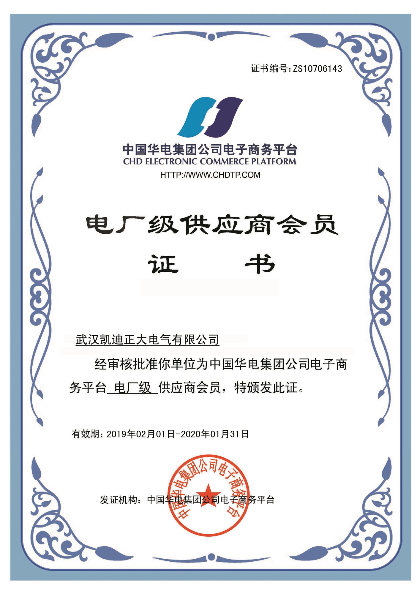 賀凱迪正大公司獲得中國華電集團(tuán)電廠級供應(yīng)商會員