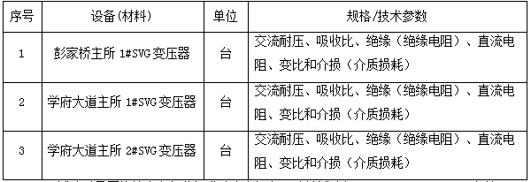 擬對彭家橋主所1#SVG變壓器、學府學府大道主所1#、2#SVG變壓器這三臺變壓器進行相關檢測試驗,根據(jù)現(xiàn)場勘察,本項目具備實施可行性。