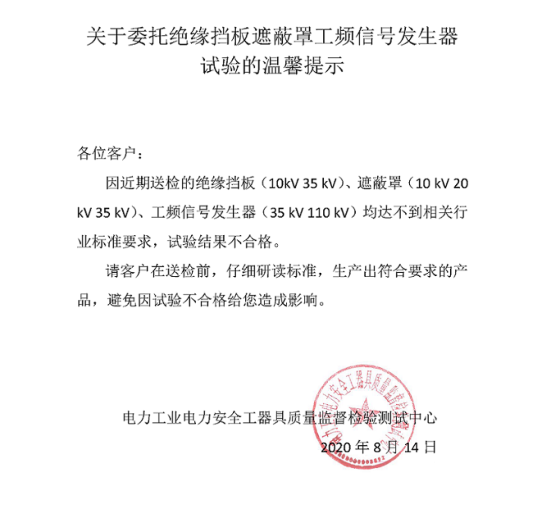 國家檢測中心是代表電力行業(yè)的權(quán)威質(zhì)量監(jiān)督檢驗測試機構(gòu),具有社會第三方的公正地位。需要獲得國家技術(shù)監(jiān)督局頒發(fā)的《計量認證合格證書》,才能認定檢測產(chǎn)品包括:攜帶型短路接地線、電容型驗電器、安全帶、安全帽、遮蔽罩、絕緣隔板、登桿腳扣、絕緣硬梯、電絕緣橡膠板、絕緣墊、絕緣手套、絕緣鞋(靴)、高壓帶電顯示裝置、防墜落裝置、緩沖器、鋼絲繩吊索、纖維繩吊索、吊裝帶、手拉葫蘆等共計59大類260個檢測項目/參數(shù),此外還承接近電報警器、帶電指示器、驗電器信號發(fā)生器、高壓拉閘桿、登高板、絕緣繩等產(chǎn)品的檢測。