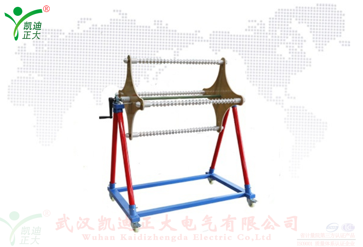 KDJS-6安全工器具試驗裝置絕緣繩耐壓試驗裝置使用說明在進行絕緣繩耐壓試驗時,需配合升壓裝置方可進行。試驗時按照上表規定的要求選擇合適的電極間距(做110kV絕緣繩試驗時,電極間距選擇0.5m,試驗電壓升到規定電壓的一半即110kV),將絕緣繩一段固定在裝置上鋁棒一端,后沿著鋁棒的凹槽按順序纏繞在裝置上,最好2個人配合操作。一個人轉動裝置,在裝置的一端有安裝把手,通過旋轉把手帶動裝置旋轉,一個人將繩子有序地纏繞在鋁棒的凹槽上。