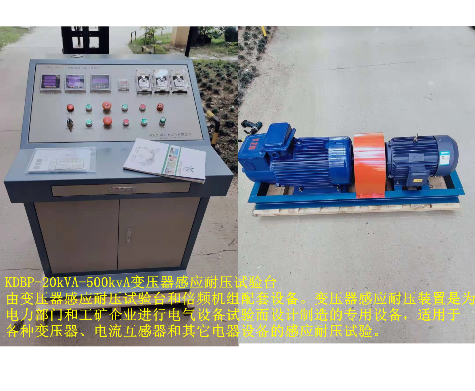 這次采購(gòu)的KDBP-20kVA變壓器感應(yīng)耐壓試驗(yàn)臺(tái)由變壓器感應(yīng)耐壓試驗(yàn)臺(tái)和倍頻機(jī)組配套設(shè)備。變壓器感應(yīng)耐壓裝置是為生產(chǎn)電力部門(mén)定制的各種變壓器的感應(yīng)耐壓試驗(yàn)出廠檢測(cè),倍頻感應(yīng)機(jī)組還可以給工礦企業(yè)進(jìn)行電氣設(shè)備試驗(yàn)而設(shè)計(jì)制造的專用設(shè)備,適用于各種變壓器、電流互感器和其它電器設(shè)備的感應(yīng)耐壓試驗(yàn)。