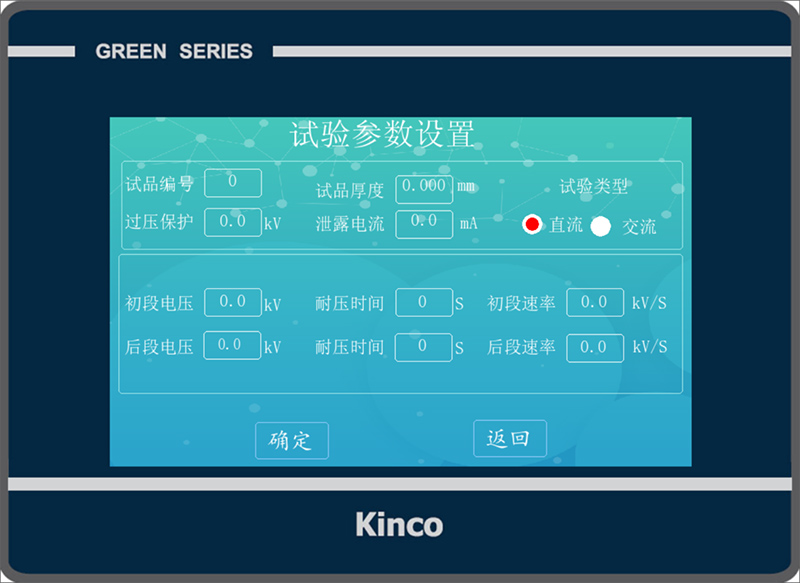 升壓速率同階段模式原理相同;點擊“確定”圖標進入到試驗界面,點擊“啟動”圖標,設備會自動升壓到初段電壓10kV;耐壓10S;然后設備會繼續升壓2kV,至12kV,然后計時5S;然后一直無限次數循環,一直到試品擊穿泄露電流超過設備的保護值,設備會自動斷電并且彈出擊穿時的電壓電流記錄值;