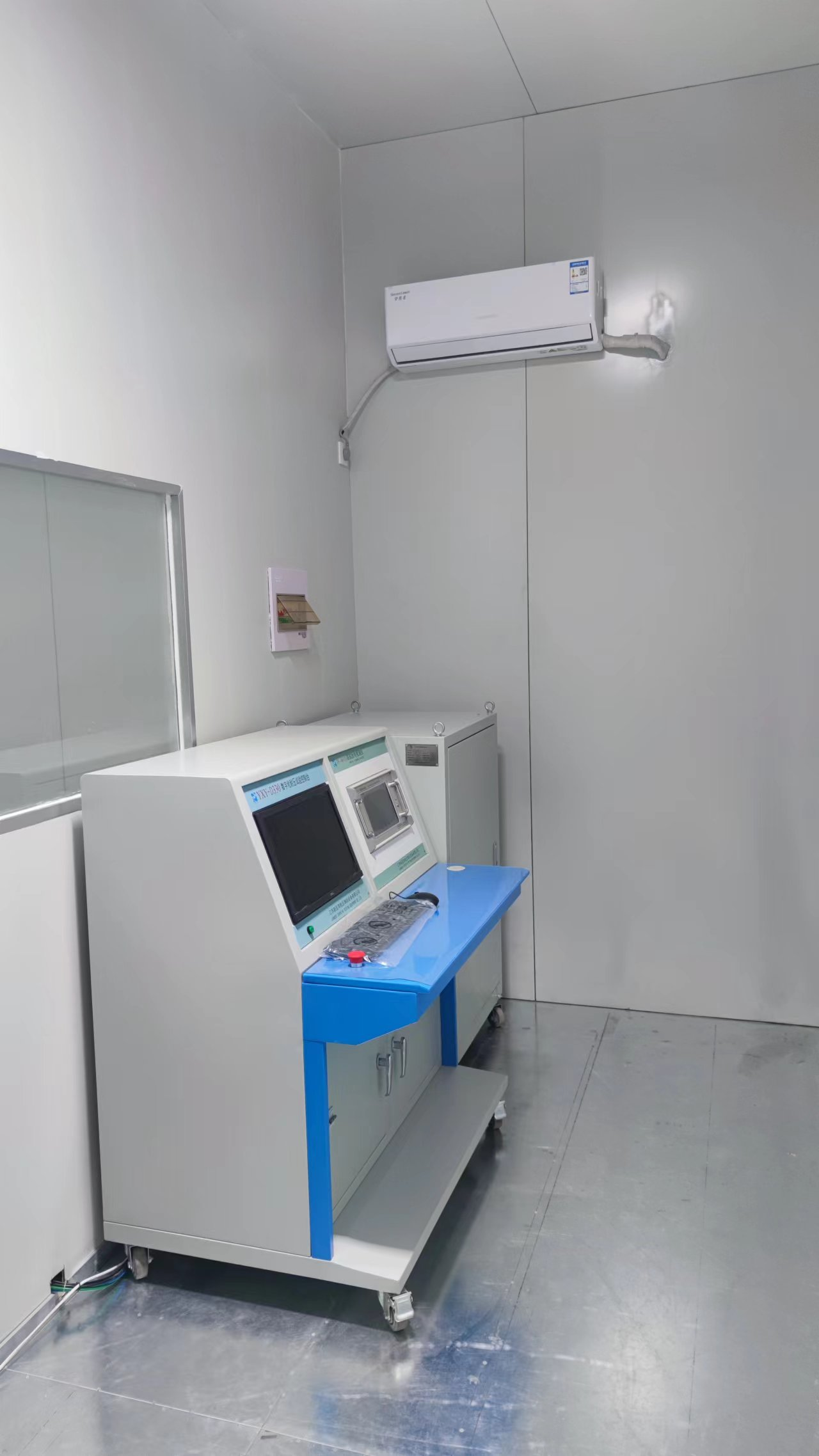 門上裝有進出門電源控制通斷開關(guān)。門關(guān)閉后,才能合閘做試驗,如果在試驗中,一旦打開,內(nèi)部自動斷電。