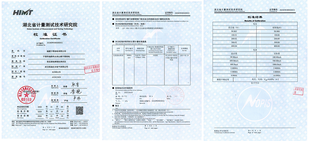 2024年1月18日,福建寧德核電有限公司從武漢凱迪正大電氣采購的KDRB-ZB變壓器短路阻抗測試儀,經(jīng)過湖北省計量測試技術(shù)研究院的嚴(yán)格校準(zhǔn),技術(shù)指標(biāo)、性能均符合要求,為客戶變壓器測試工作提供了更加精準(zhǔn)、可靠的保障。這一校準(zhǔn)不僅彰顯了凱迪正大電氣產(chǎn)品的品質(zhì),也突顯了凱迪正大電氣在保障電力安全方面的產(chǎn)品實力。