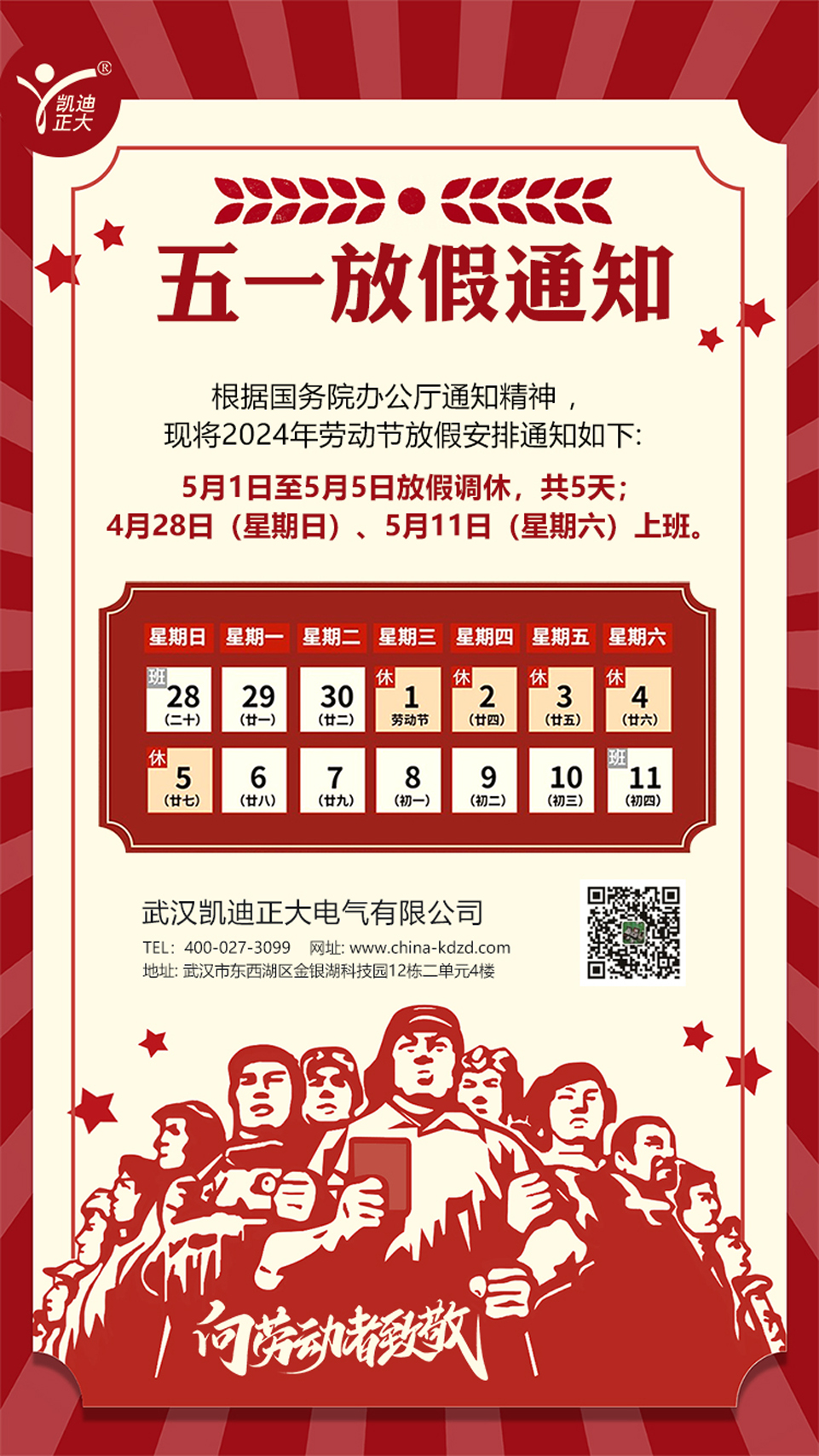 2024年5月1日武漢凱迪正大電氣放假通知!