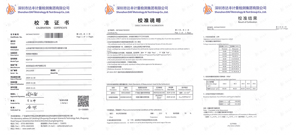 近日,山東某能源分公司采購(gòu)凱迪正大電氣生產(chǎn)的KDJF-IV局部脈沖探測(cè)儀順利通過(guò)了深圳市達(dá)豐計(jì)量檢測(cè)集團(tuán)有限公司的校準(zhǔn)。