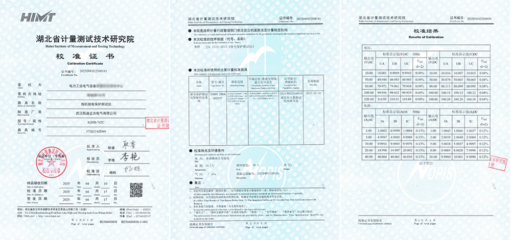 凱迪正大KDJB-702C微機繼電保護測試儀以穩定的可靠性和便捷的操作方式,贏得了廣大用戶的青睞,用戶的認可。此次通過湖北省計量測試技術研究院的校準,更是進一步驗證了該測試儀的準確性和可靠性,增強了客戶對其的信心。