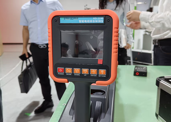 在技術演示環節,凱迪正大技術人員通過模擬實際工作場景,展示了KD-2190智能電纜綜合探測儀的操作流程。技術人員詳細介紹了產品的各項技術參數: